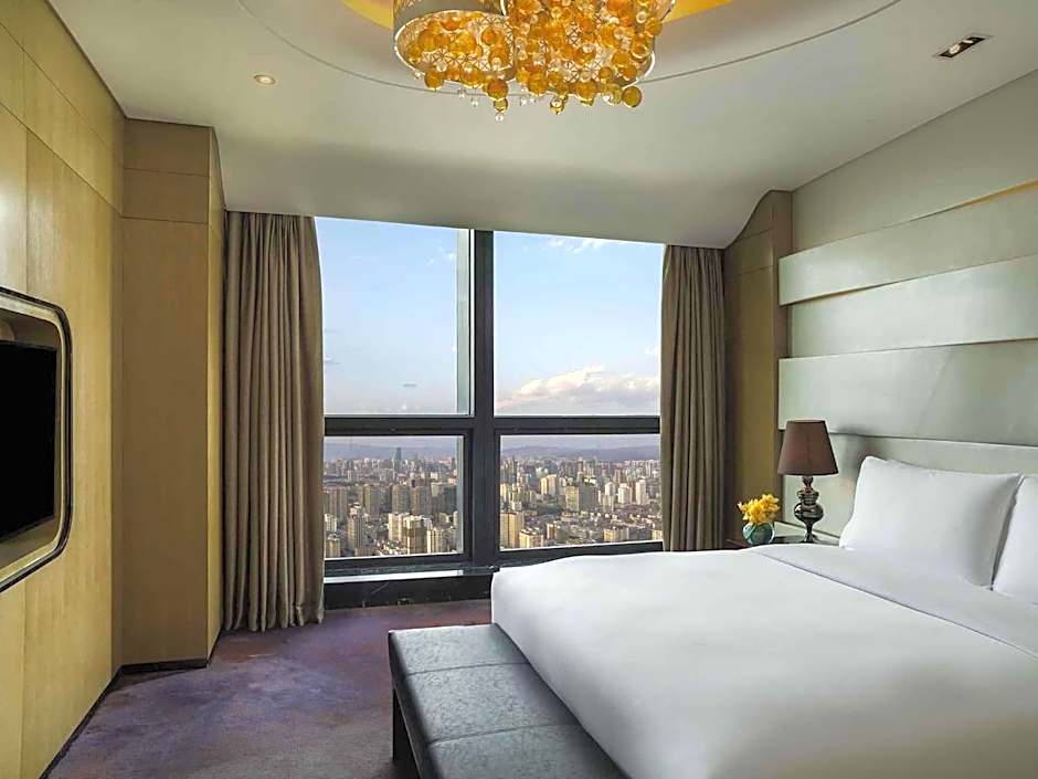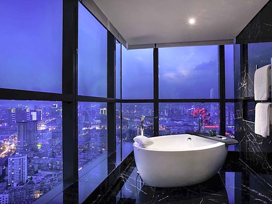 Located on floor 27 - 46, suite offers separated working and living room area. It offers branded bathroom amenities, complimentary high speed internet access, 1080P HDTV, selection of international TV channels and HD movies, Bose music system, MyBed™ and floor-to-ceiling windows.